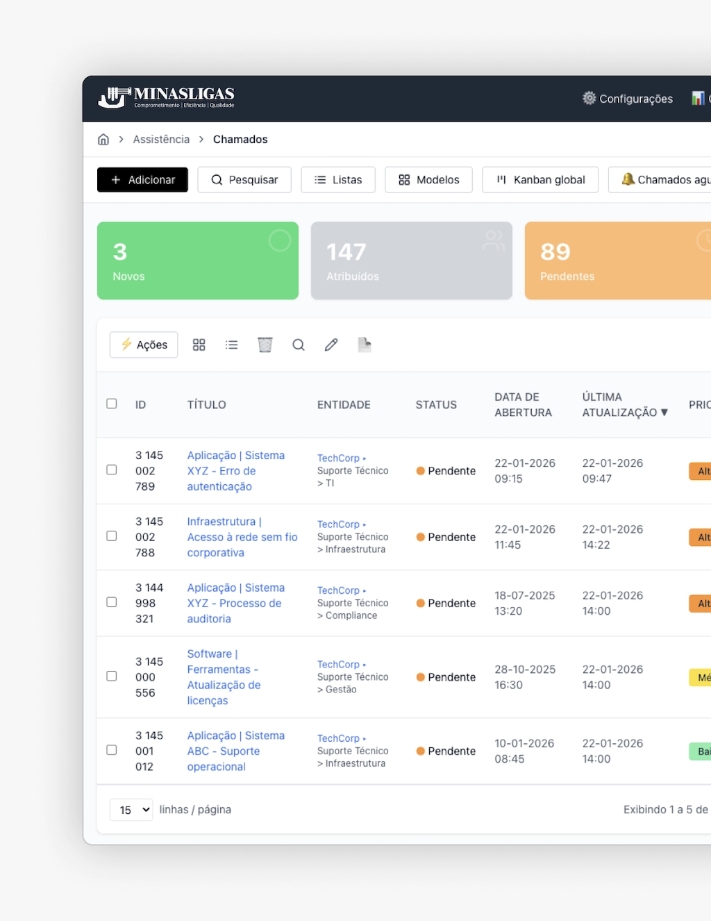 A Minasligas buscava elevar a maturidade do Service Desk interno com métricas claras, processos organizados e visibilidade sobre a operação.