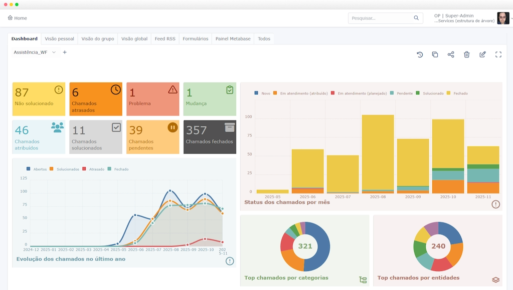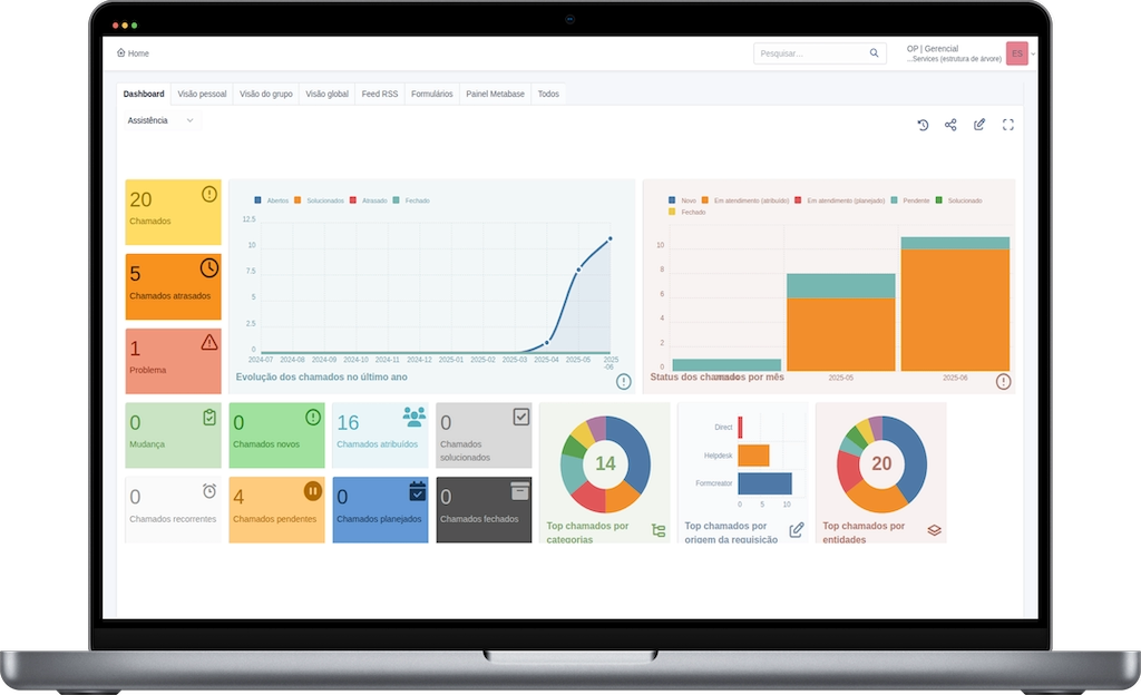 Gestão completa de ativos, automação de chamados e fluxos integrados. Transforme seu suporte em centro estratégico de valor com visibilidade total do ciclo de vida de serviços de TI.