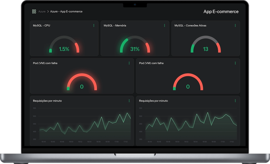 Totalmente. Criamos dashboards sob medida para diferentes perfis: visões executivas com KPIs estratégicos, dashboards técnicos detalhados e views específicas por serviço ou aplicação.