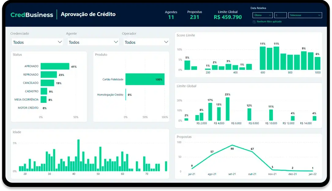 Estruturação de dados e cálculos para indicadores. Dashboards confiáveis e user-friendly.