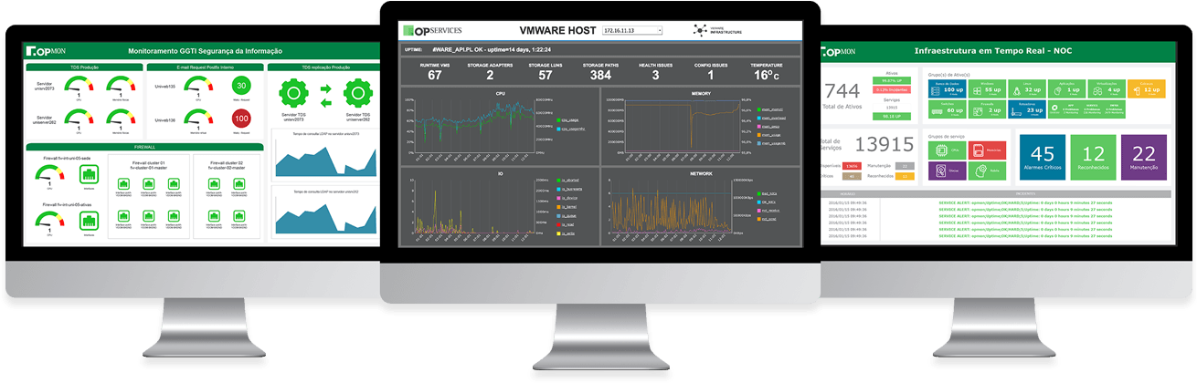 Nossa equipe monitora continuamente seus sistemas e aplicações. Criamos alarmes personalizados para cada ativo e seguimos fluxos de classificação por criticidade, acionamento e documentação de incidentes.