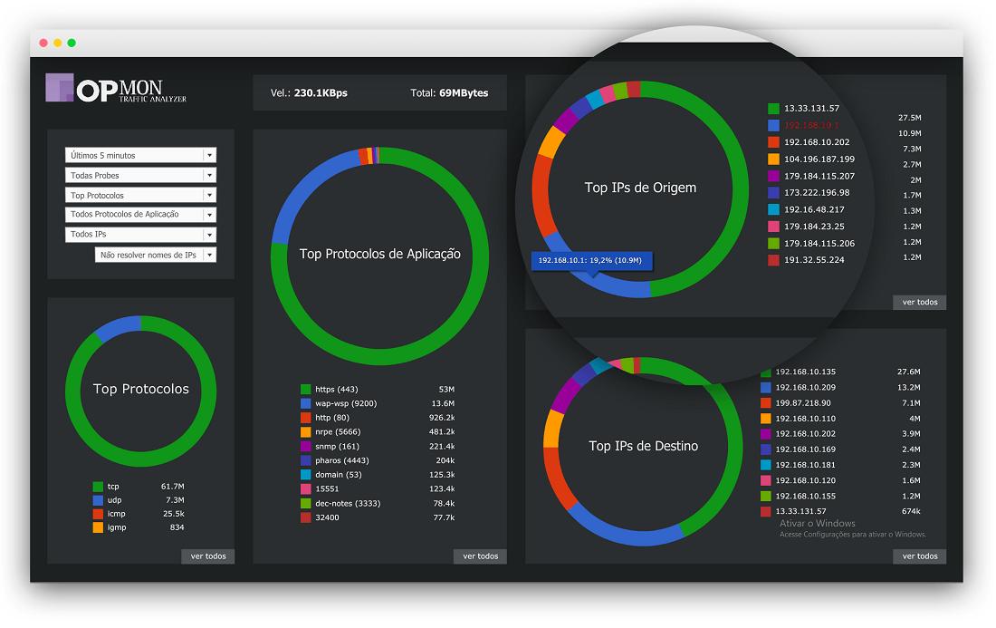 As Probes da solução de tráfego de rede são ilimitadas. Além da interface amigável, esse é um dos muitos diferenciais do software do OpMon Traffic Analyzer. Também é 100% integrado com o OpMon PRO para visão em console única.